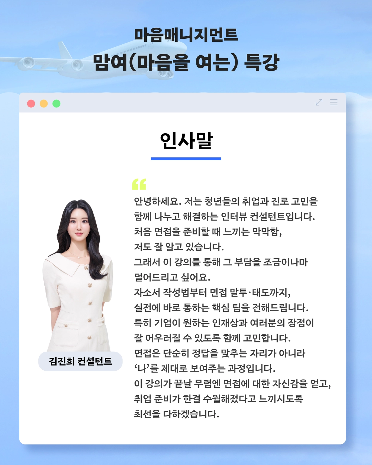 [맘여특강] 지상직 취업 특강 - 면접관을 단숨에 사로잡는 1%의 비밀!